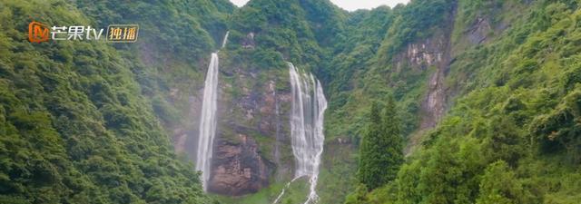 正如剧中男主所说,悬崖如刀劈斧砍,十分雄奇,瀑布柔滑如缎,轻盈飘逸。
