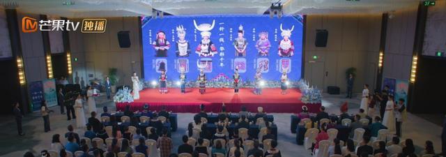 之后绣娘 们给她举办了庆功宴,这时候的衮月亮又换了另一套服饰,不仅衣服上绣得有花朵,就连头发也戴上了一朵大红花,花美人更美,当她低头似笑非笑的时候,那娇羞的模样,观众都给看呆了。