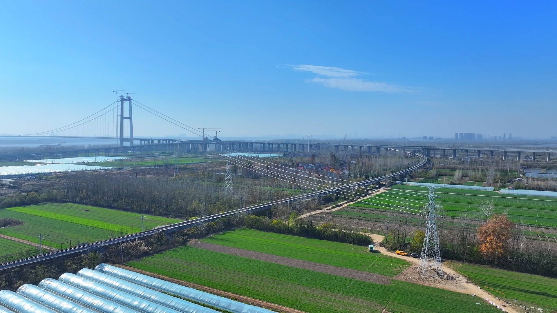 与施工现场相距不远处,双柳长江大桥也在马不停蹄地建设中。据了解,110千伏新洲挖沟—涨渡湖线路总长17.71公里,新建杆塔44基,工程跨越了武汉都市圈环线(六环线)高速公路、武黄城际铁路,在施工中面临多重困难。