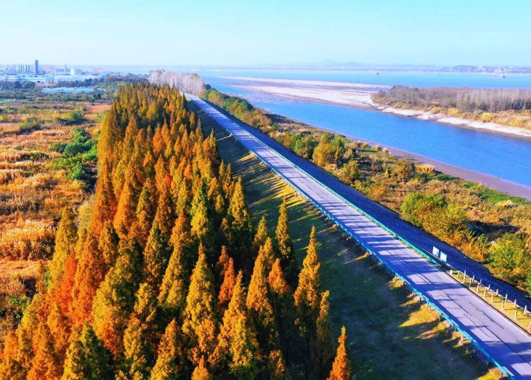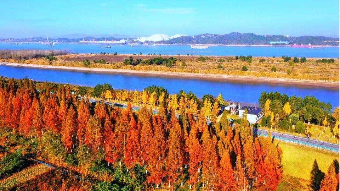 2. 芦苇荡边:红叶+芦苇+长江远景,氛围感拉满