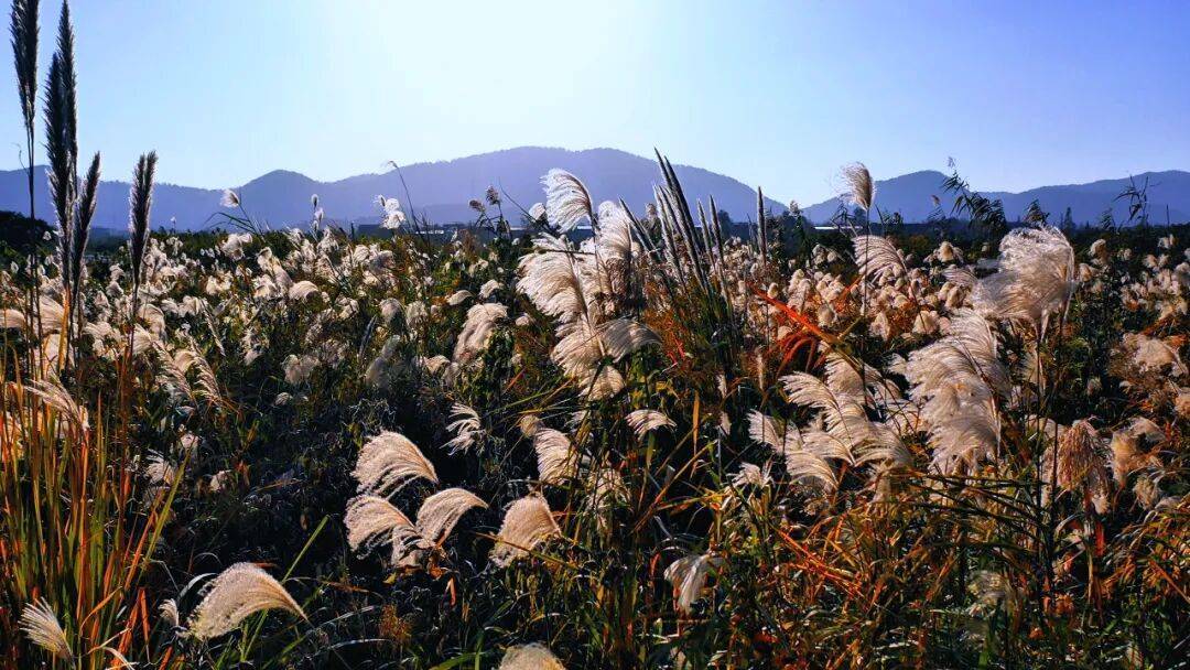 大片芦苇迎风起舞