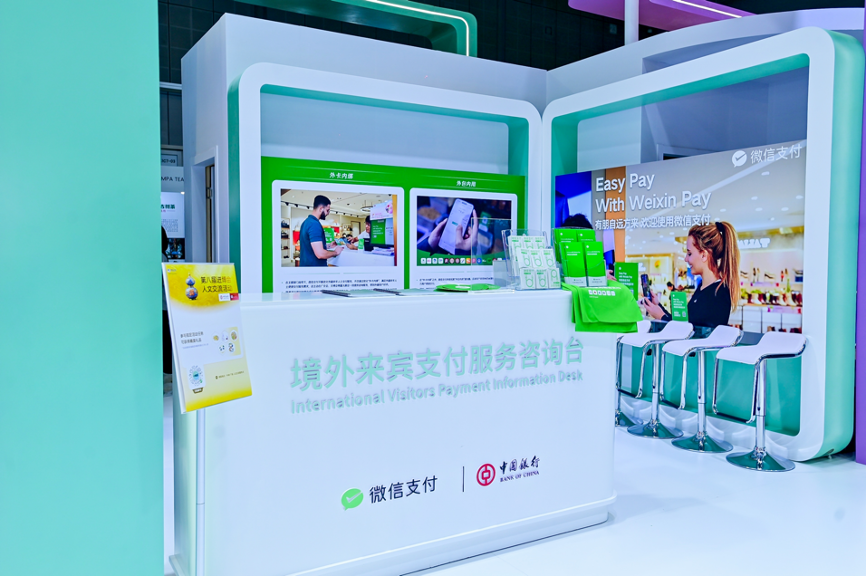 火爆的进博会,持续释放“中国大市场”的吸引力。为向参会外宾和前来寻找机遇的外籍人士提供更丝滑的支付体验,在中国人民银行指导下,微信支付联动中国银行,首次在国家会展中心(上海)7.1号馆的跨境电商专区搭建了进博会入境支付服务台,为境外旅客提供多种来华消费方式咨询。